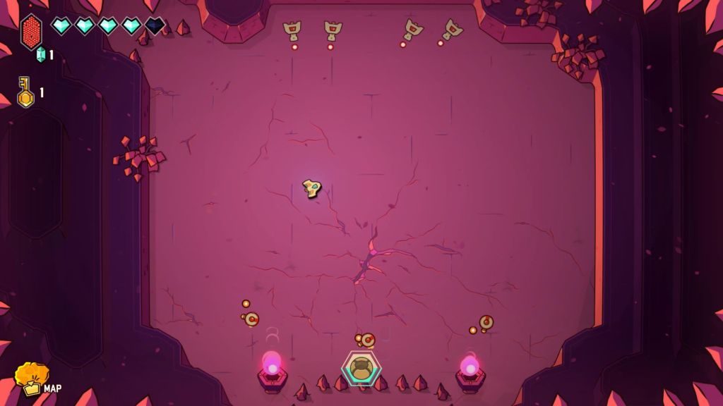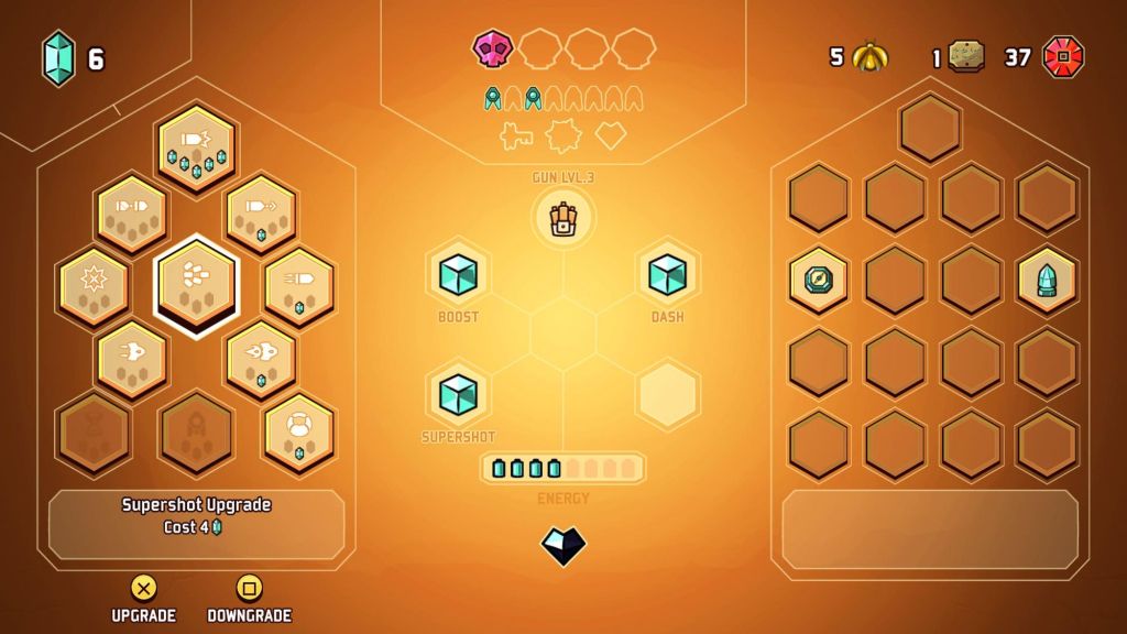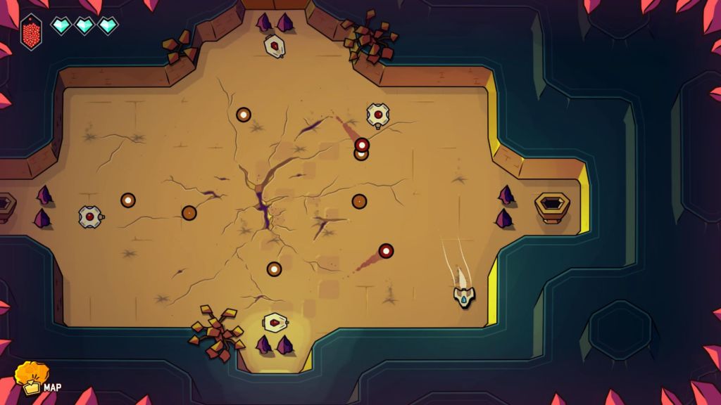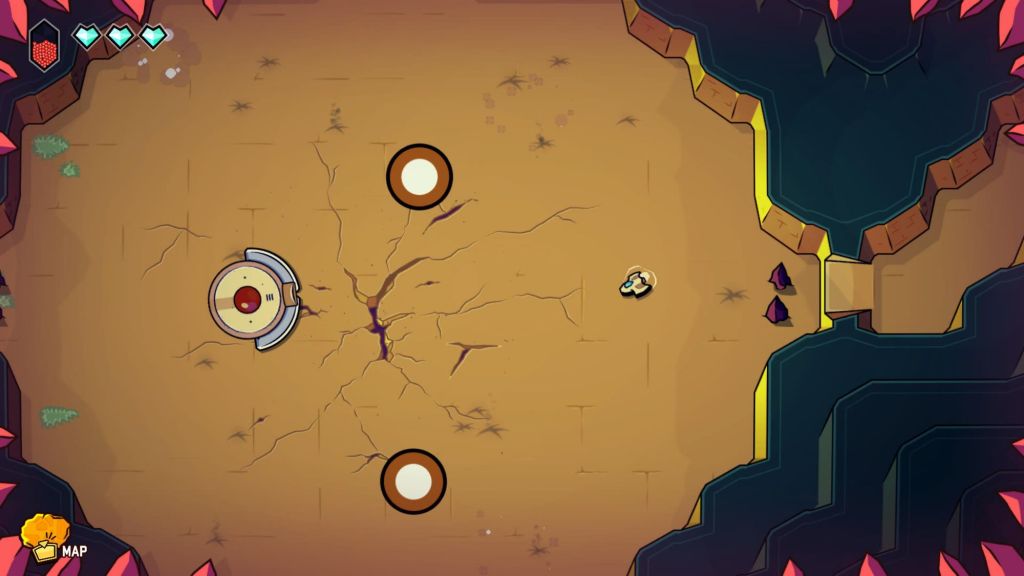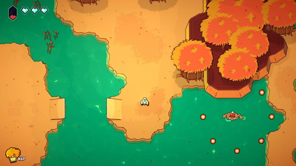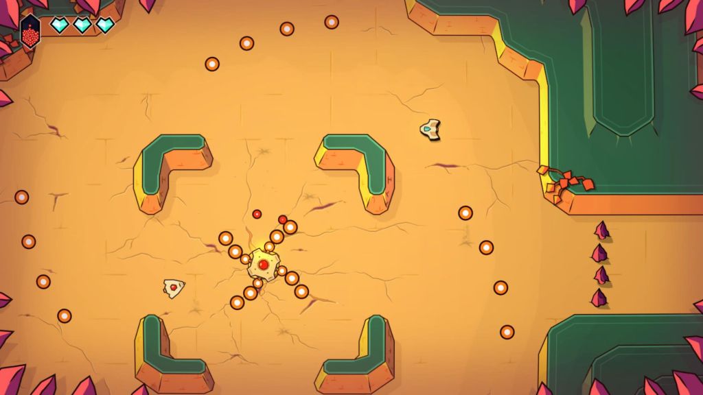 Fly into a charming handcrafted world and go on an adventure that mixes up open exploration with crispy twin-stick shooter action. Fight your way from the shiny overworld to the deepest caves, improve your ship and overcome the dungeons’ bosses to rescue your friends!