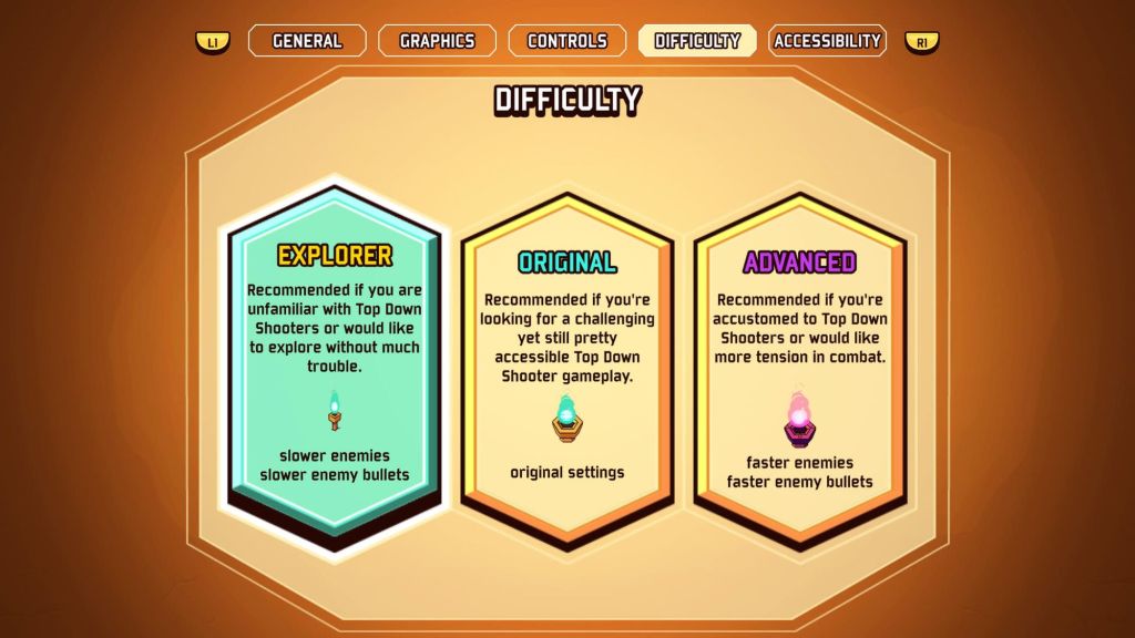- A GAME MADE FOR YOU. Whether you like chill exploration or hardcore Bullet Hell, we got you covered with 3 difficulty modes, aiming assistance, auto fire and more accessibility options.