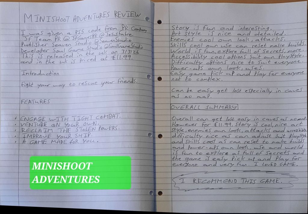 Overall you can get lost easy when in caves as no map. However for £11.99, the story is cool and nice art style as hand drawn style and enemies all have alot of variety and own look and attacks to them and accessibility, difficulty options are nice as can adjust to suit own playstyle and skills are cool as can reset them for free at any time to make own builds is very nice and power ups all have own look, use and the world is fun to explore as full of secrets to find and the game is easy to pick up and play for everyone and is very fun. I LOVED THE GAME.