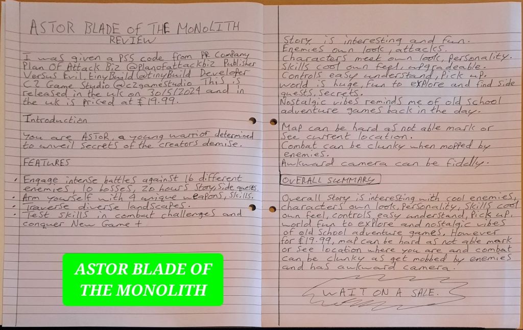 Overall story is interesting with cool enemies and has characters that all have own look and own personality to them and skills are cool as all have own feel to them and can be upgraded aswell is always nice and controls are easy to understand and pick as not many combos or buttons to remember with a fun world to explore and nostalgic vibes of an old school adventure game. However for £19.99, map can be hard to read as cant zoom in or mark map to mark of secrets or find exactly where you are and combat can be clunky as get mobbed by enemies and has a awkward camera.