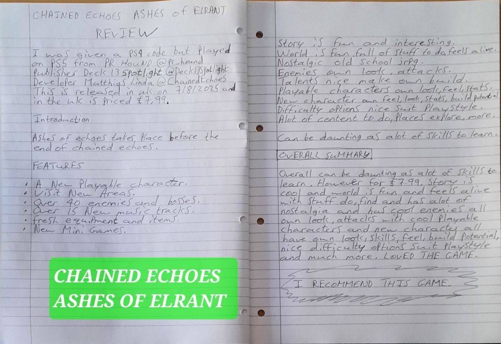 Eldrea is calling once again. Eldrea needs you. One. More. Time. Ashes of Elrant is the official DLC for the highly acclaimed Chained Echoes, offering you more of what you enjoyed so much. Meet all your beloved characters and answer the call as the Crimson Wings are needed once again.