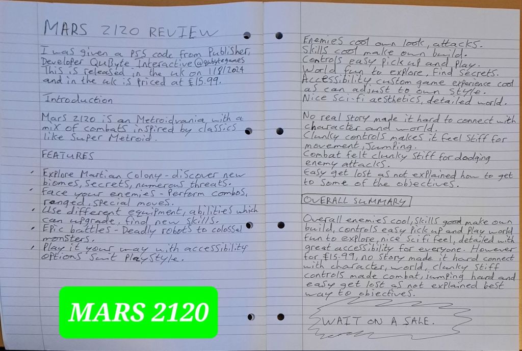 Overall enemies cool, skills are good as can make own build and controls are easy to pick up and play with the world is fun to explore with a nice sci fi feel that is detailed and very great accessibility to adjust amount of damage you take and even damage you do to enemies and much more is great for all types of players. However for £15.99, no story made it hard to connect with the character and the world and the clunky stiff controls made it hard for combat, jumping and easy get lost as not clear best way to get to certain objectives.